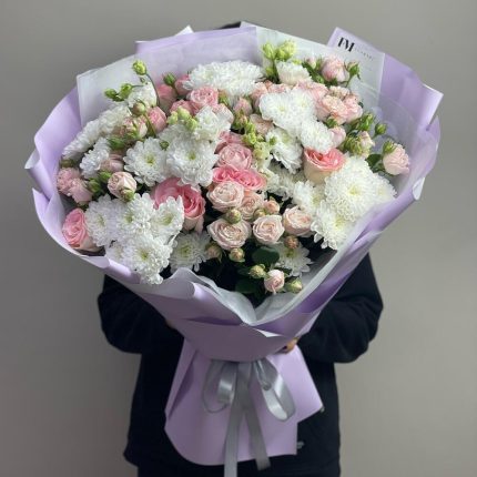Сборный букет с одноголовой хризантемой и розами «Принцесса Нурри» 44
