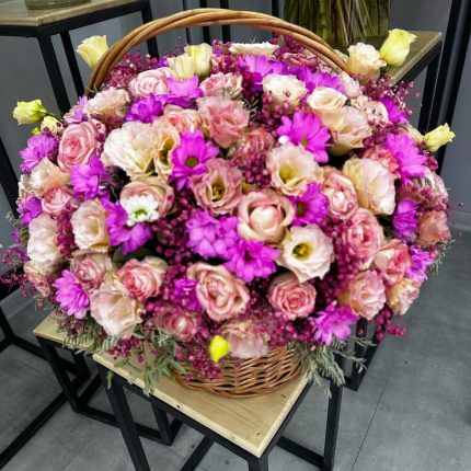 Большой букет с французскими розами, пион кустовой розой и гортензией
