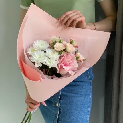 Букет из белоснежных ромашек и воздушной гипсофилы “Ромашки в снегу”