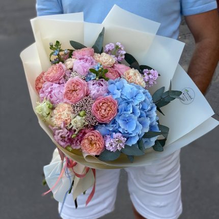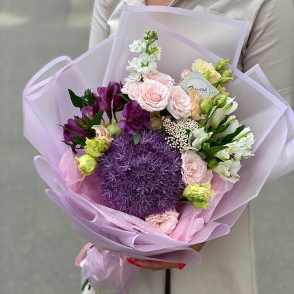 Букет из 9 разноцветных маттиол в стильной упаковке “Персиковый плен”