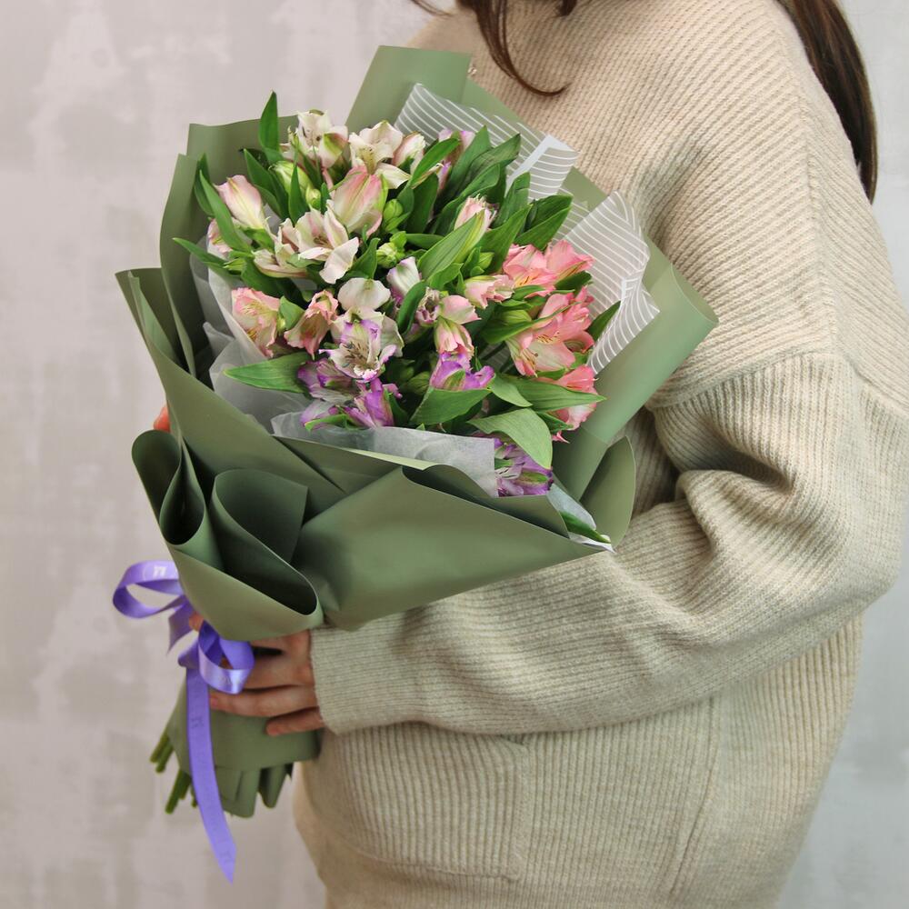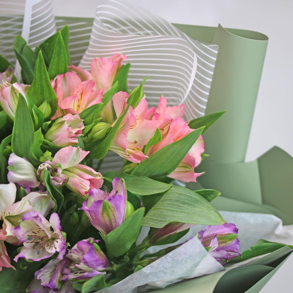 Букет из 11 альстромерий нежный микс в упаковке