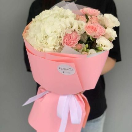 “Эвкалиптическая роскошь” гортензия и пионовидная кустовая роза