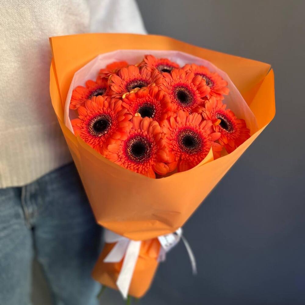 Гербера – 11 шт. Упаковка дизайнерская – 4 шт. Лента атласная – 1 шт.