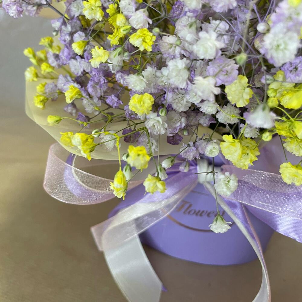 “Атлас☁️” – цветочная композиция с зефиром в деревянном ящике
