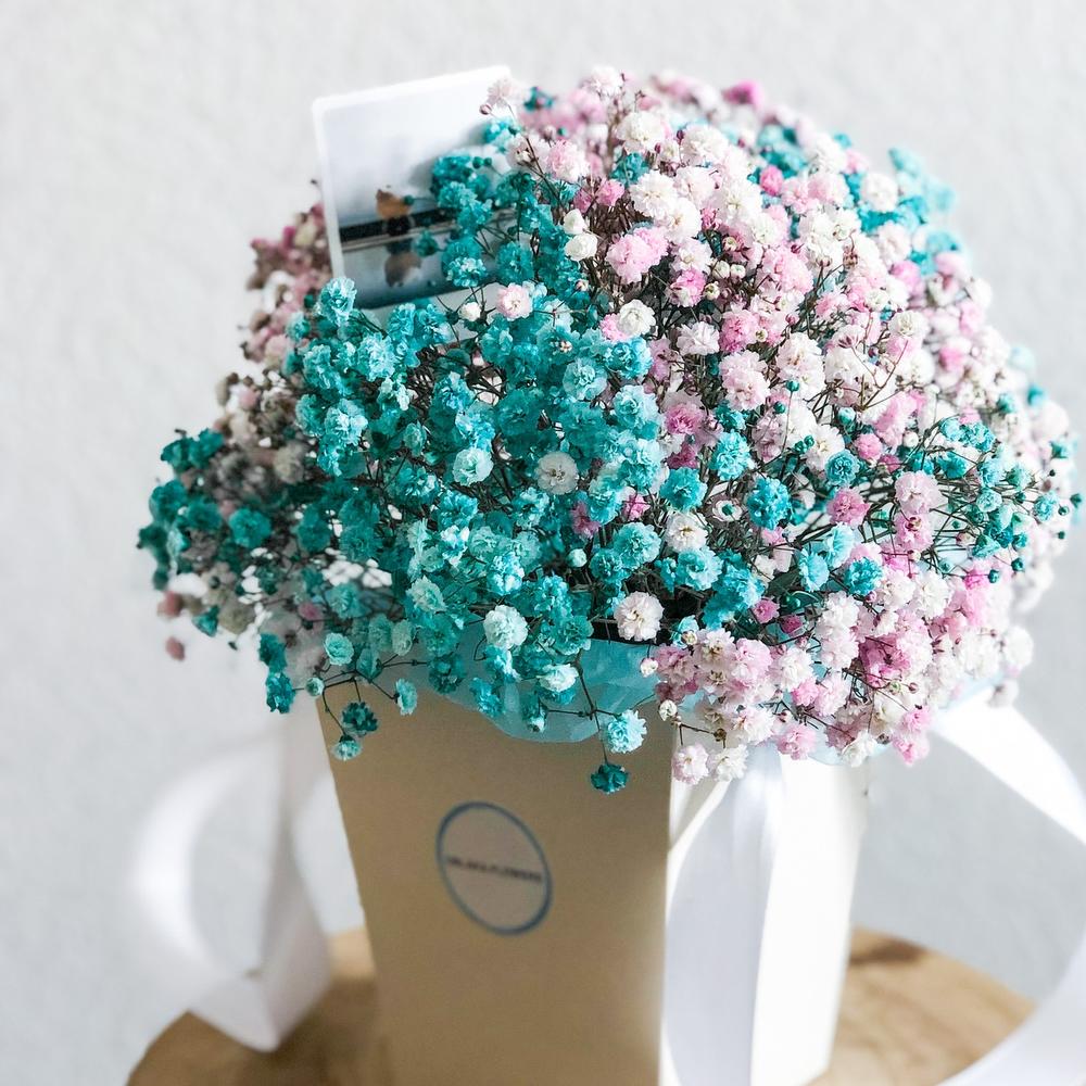 Гипсофила – 5 шт.коробка с ручками красная – 1 шт.Тишью – 4 шт.Оазис – 1 шт.
