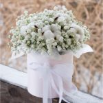 “Сиреневый туман” – композиция из гипсофилы в шляпной коробке