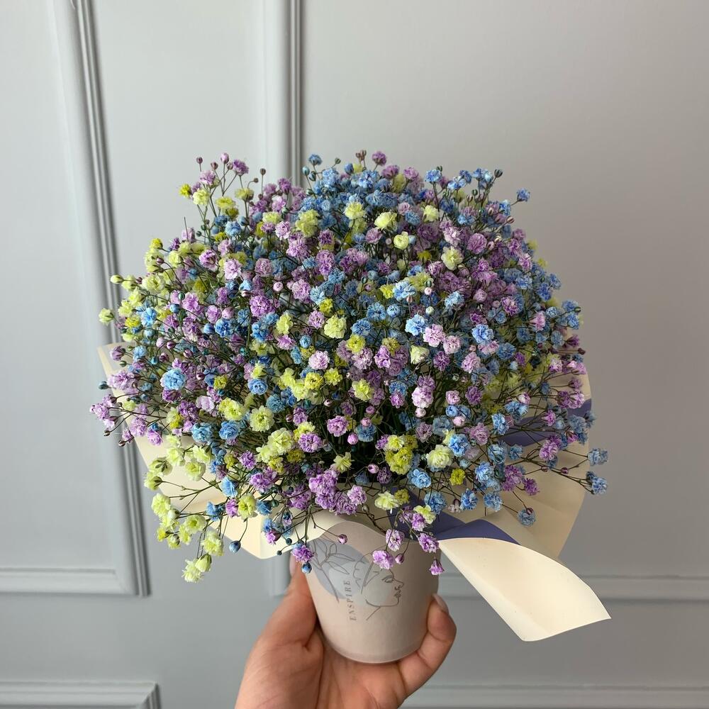 Гипсофила – 3 шт.Пленка матовая – 1 шт.Оазис флористический – 1 шт.стакан кофейный – 1 шт.