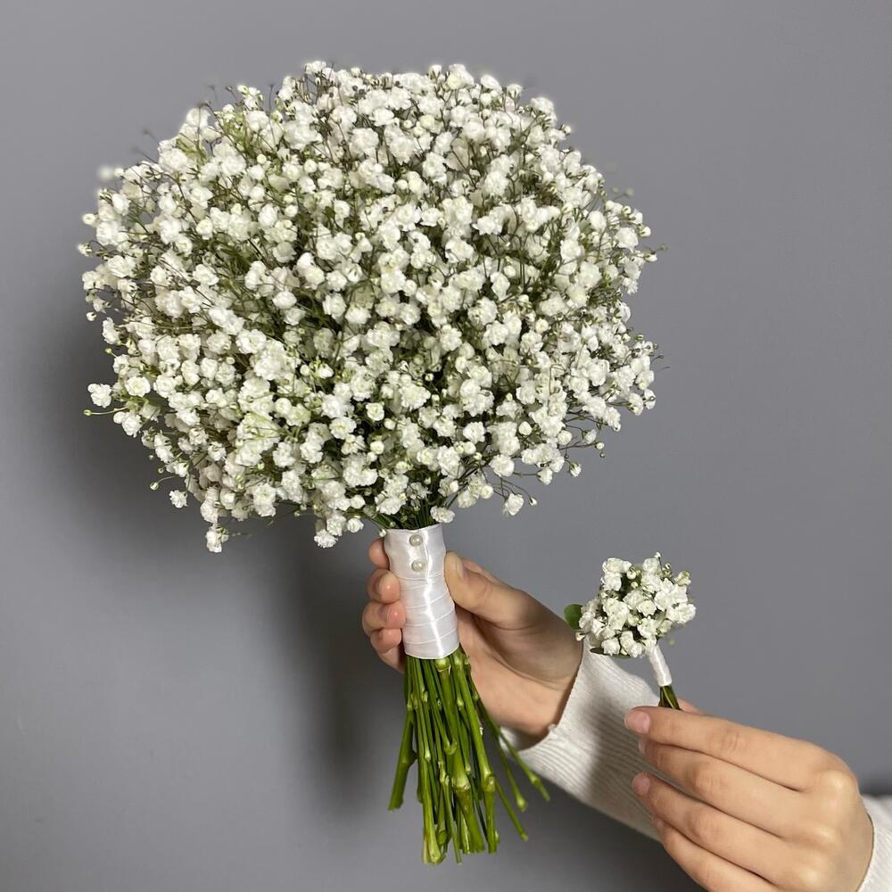 Моно из белой воздушной гипсофилы для самой красивой невесты. Цветы заказываются индивидуально под каждый букет, поэтому заказ лучше делать минимум за 5 дней до торжества.