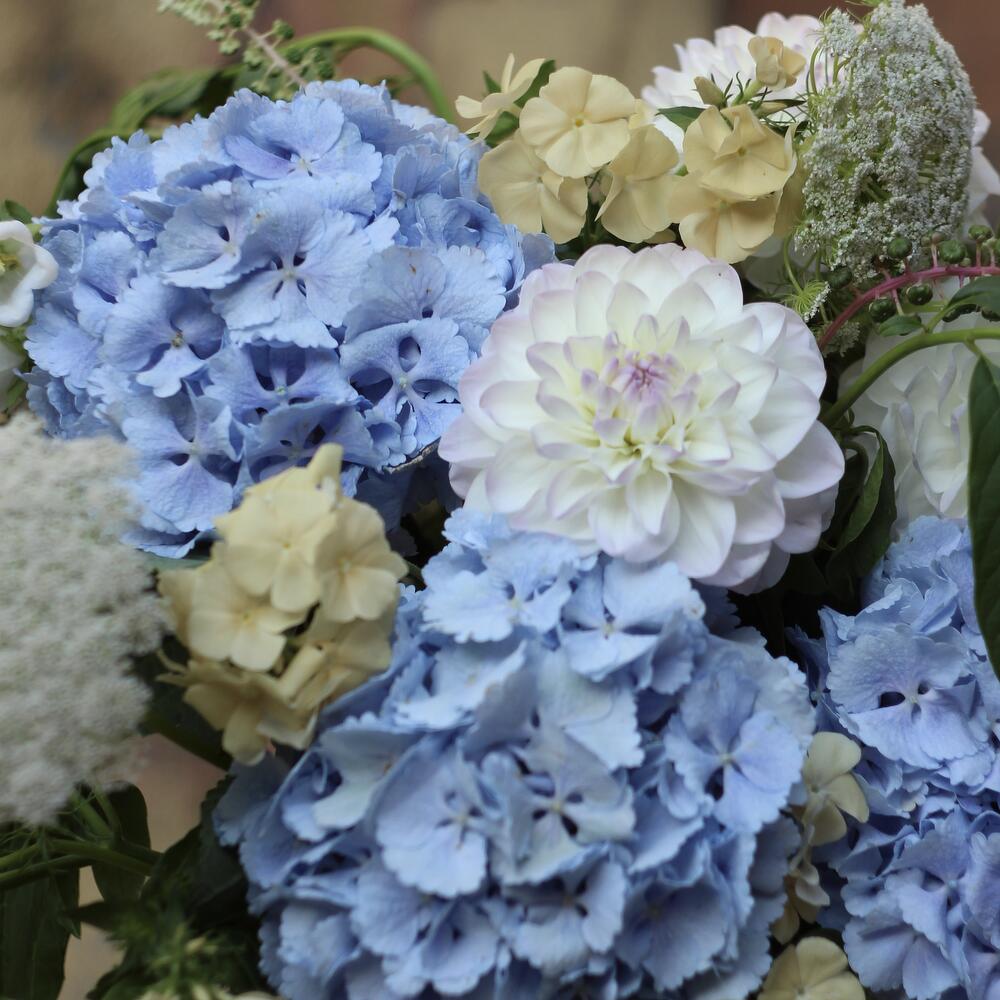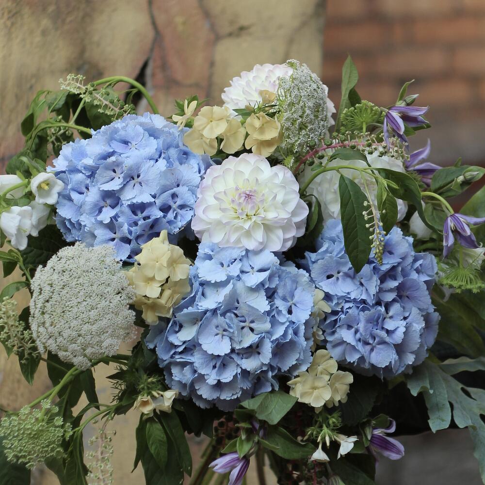 “Эвкалиптическая роскошь” гортензия и пионовидная кустовая роза