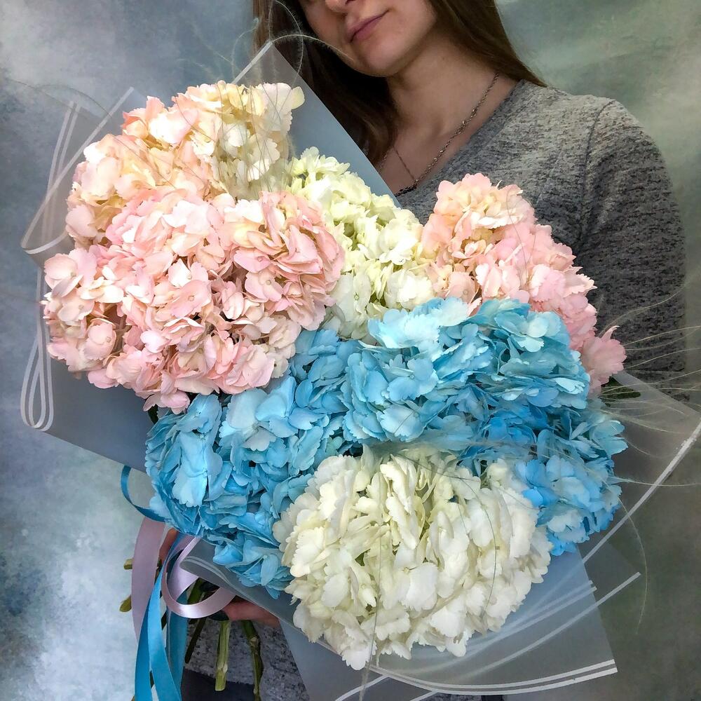 Гортензия – 7 шт.Рускус – 2 шт.Упаковка дизайнерская – 2 шт.стифа пучок – 3 шт.