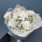 Букет с голубой гипсофилой и хлопком «Облачко»