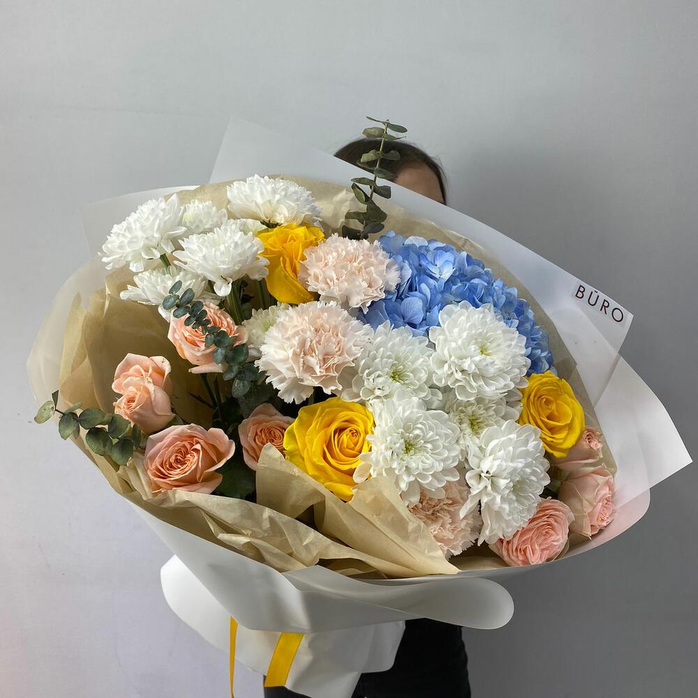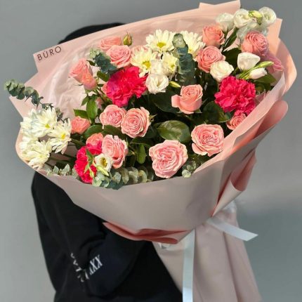 Гвоздики, Кустовые розы, Лизиантусы, Пионовидные розы, Розы
