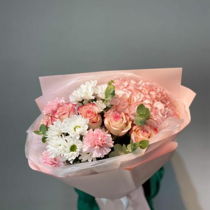 Альстромерии, Гвоздики, Кустовые розы, Лизиантусы, Розы, Хризантемы