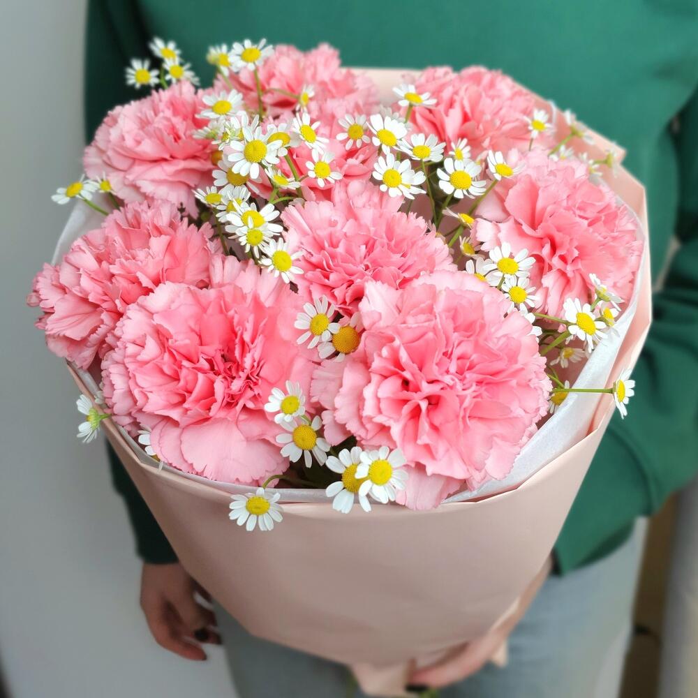 диантусы – 9 шт.Танацетум – 3 шт.Дизайнерская упаковка – 2 шт.