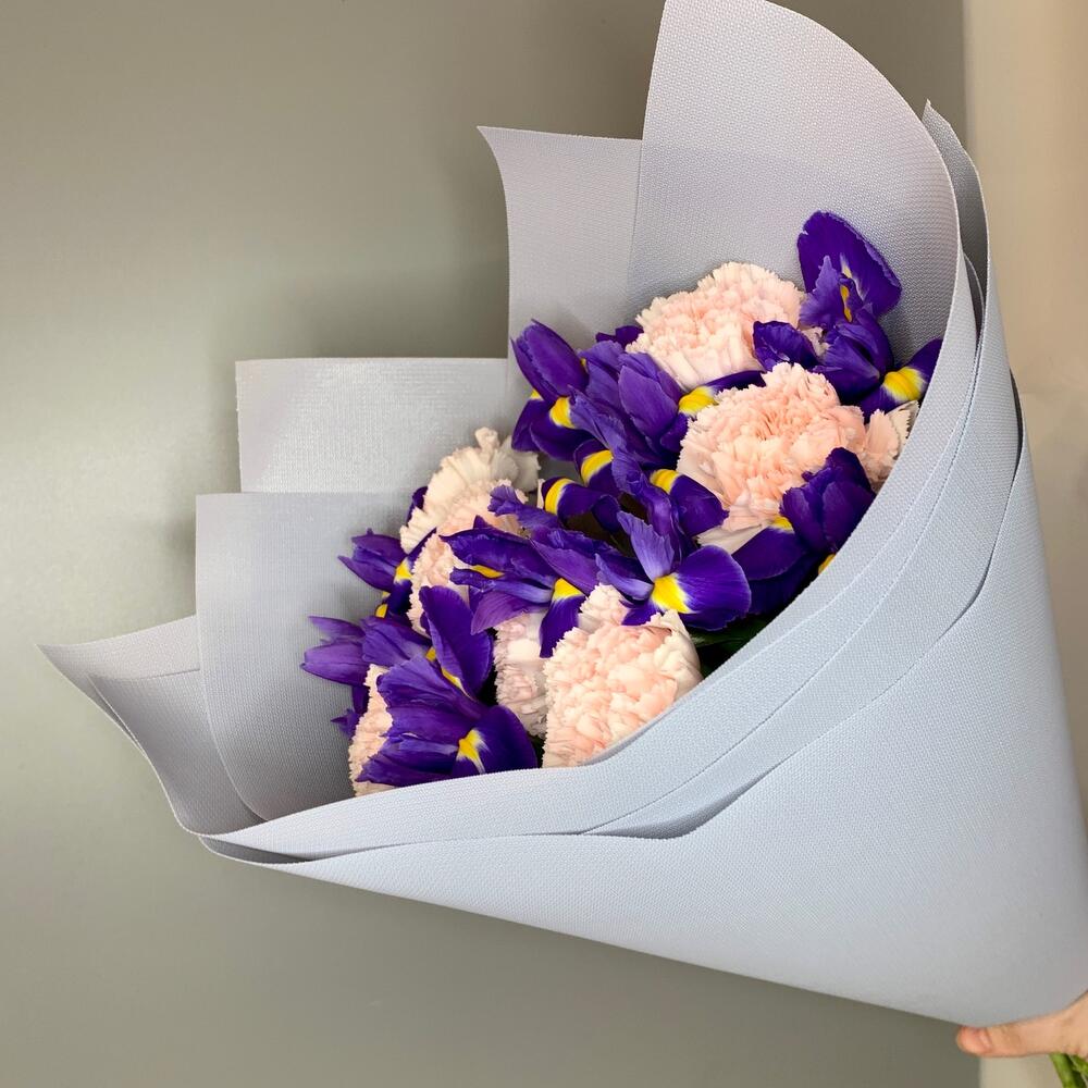 Ирис – 10 шт.Лента атласная – 2 шт.Диантус – 7 шт.Фетр – 2 шт.