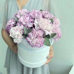 Шляпная коробка фиолетовых гвоздик (N 131)