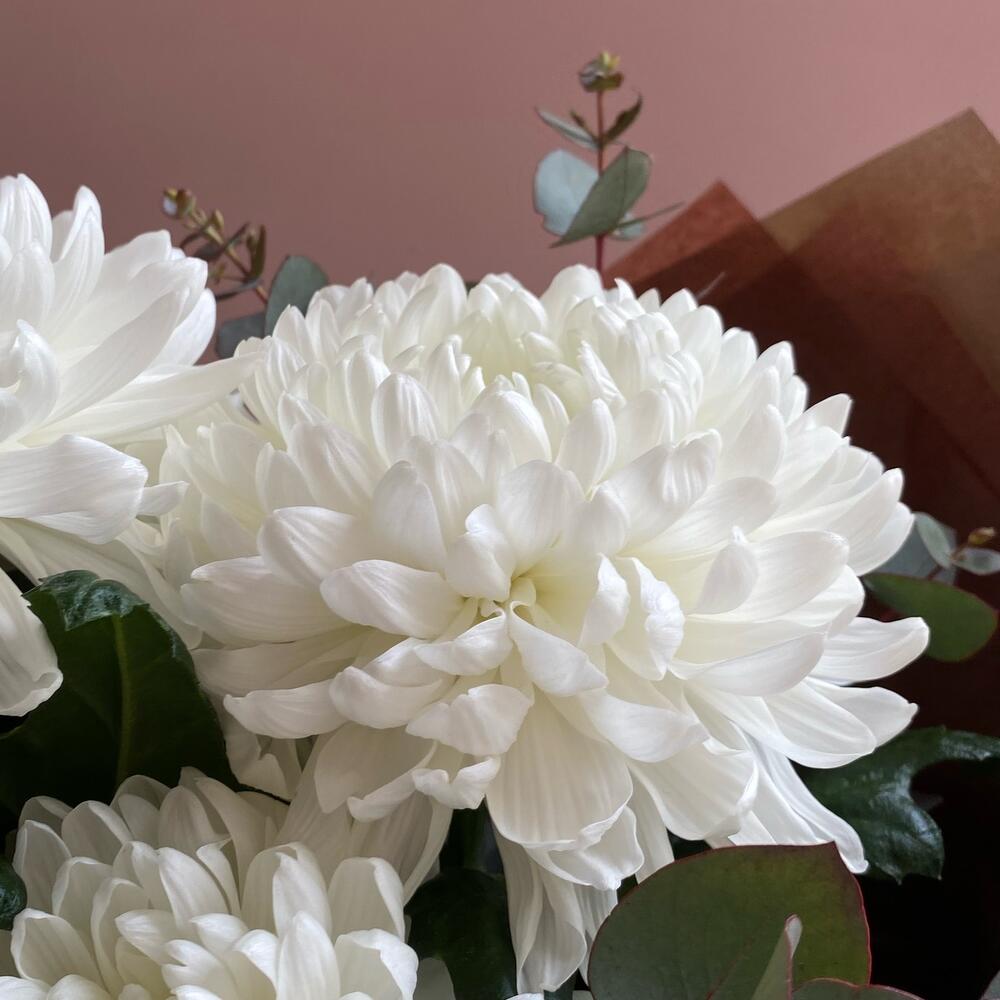 Букет из хризантем «Стиль» (одноголовая Хризантема Антонов, эвкалипт)