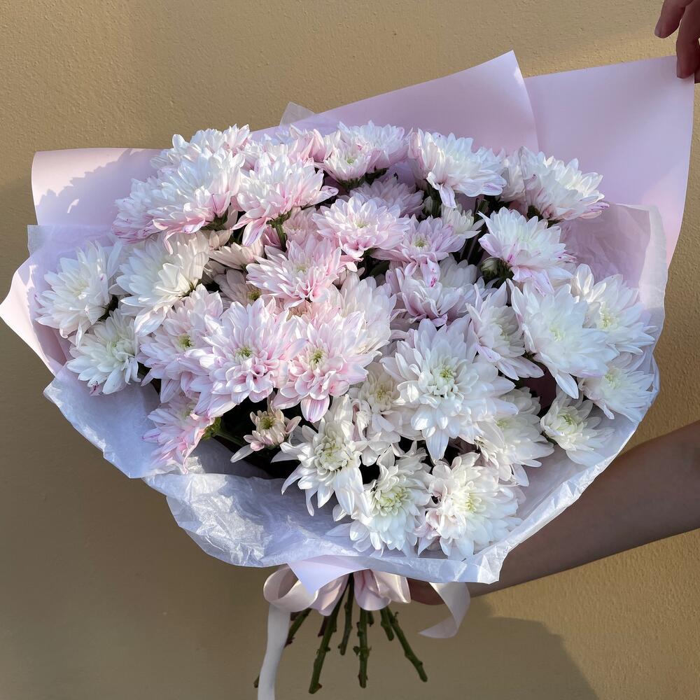 Нежный монобукет из хризантем