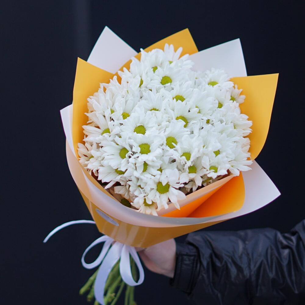 Хризантема кустовая – 7 шт. Упаковка дизайнерская – 2 шт. Открыточка с вашими пожеланиями – 1 шт. инструкция по уходу за цветами – 1 шт.
