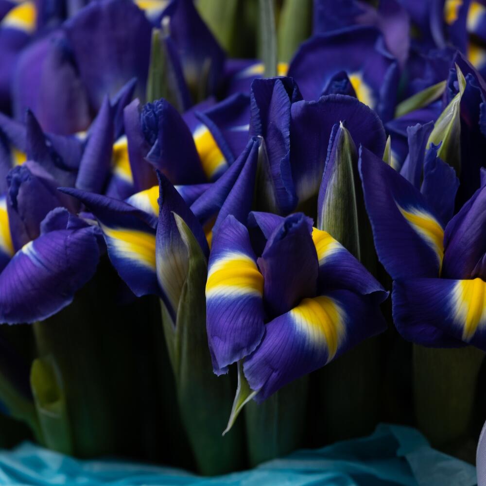 Ирис – 51 шт.Корзина плетеная – 1 шт.Лента атласная – 1 шт.Открыточка с вашими пожеланиями – 1 шт.хорошее настроение – 100 шт.инструкция по уходу за цветами – 1 шт.Кризал – 1 шт.
