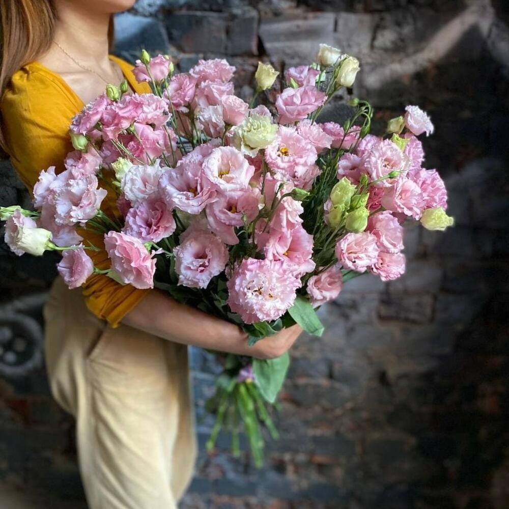 Букет из 25 розовых эустом (лизиантусов) в стильной упаковке “Аннэт”