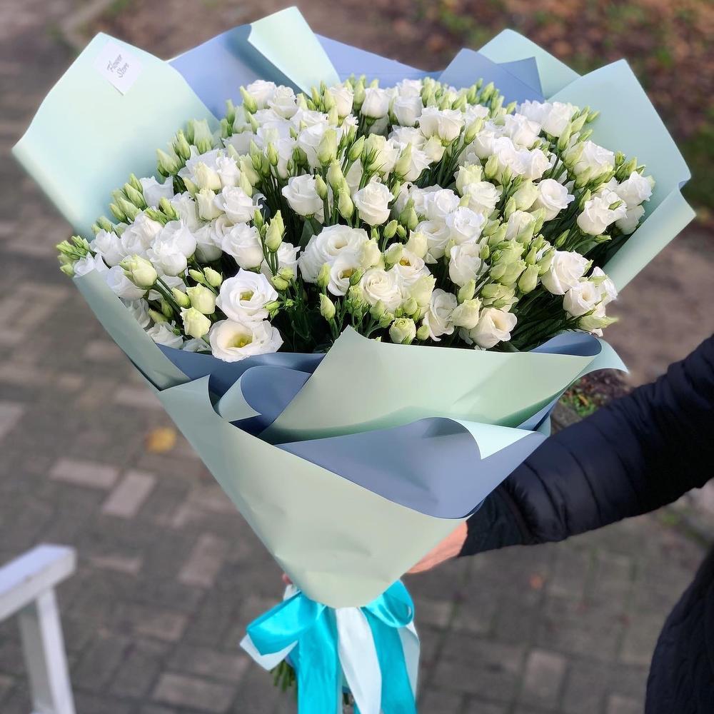 Эустома – 37 шт.цветная бумага – 1 шт.Атласная лента – 1 шт.
