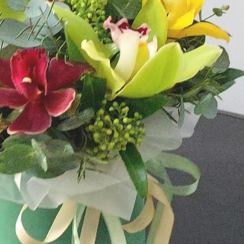 Цветы в коробке.Орхидеи Цимбидиум в шляпной коробке