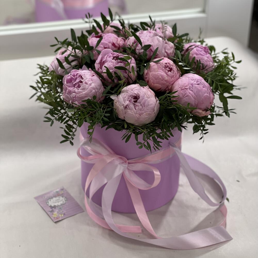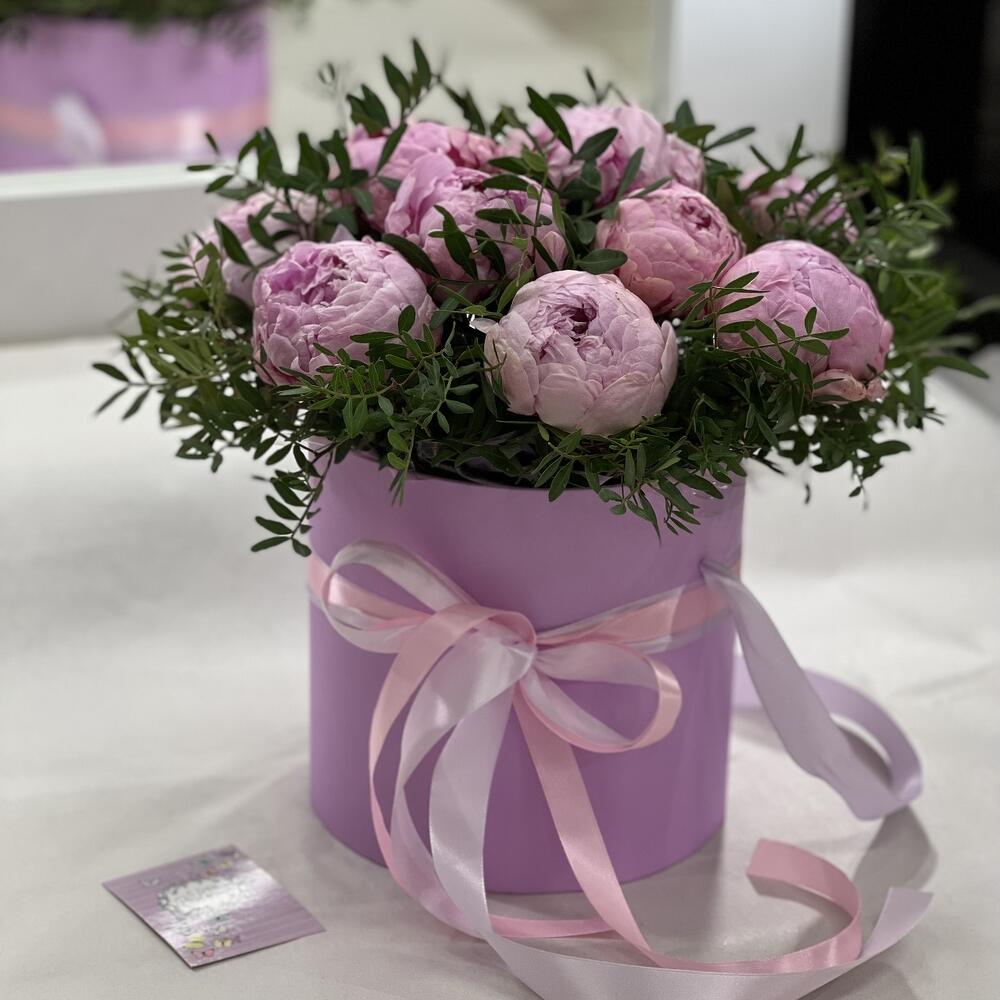 Коробка шляпная – 1 шт.Пион Сара Бернар – 11 шт.