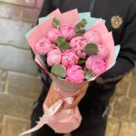 Эвкалипт – 5 шт.Лента атласная – 1 шт.Пион Сара Бернар – 11 шт.Упаковка дизайнерская – 1 шт.