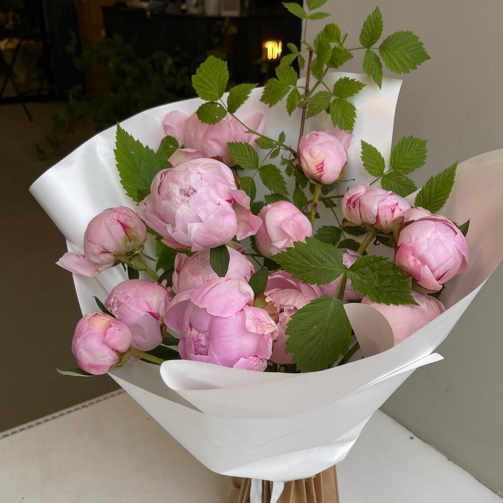 Пион Сара Бернар – 15 шт.Малина – 1 шт.Упаковка – 1 шт.
