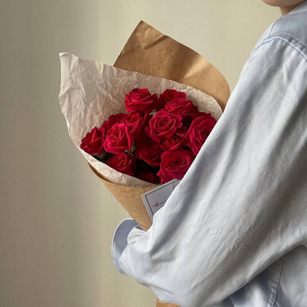Красная кустовая роза – 3 шт.Крафт упаковка – 1 шт.