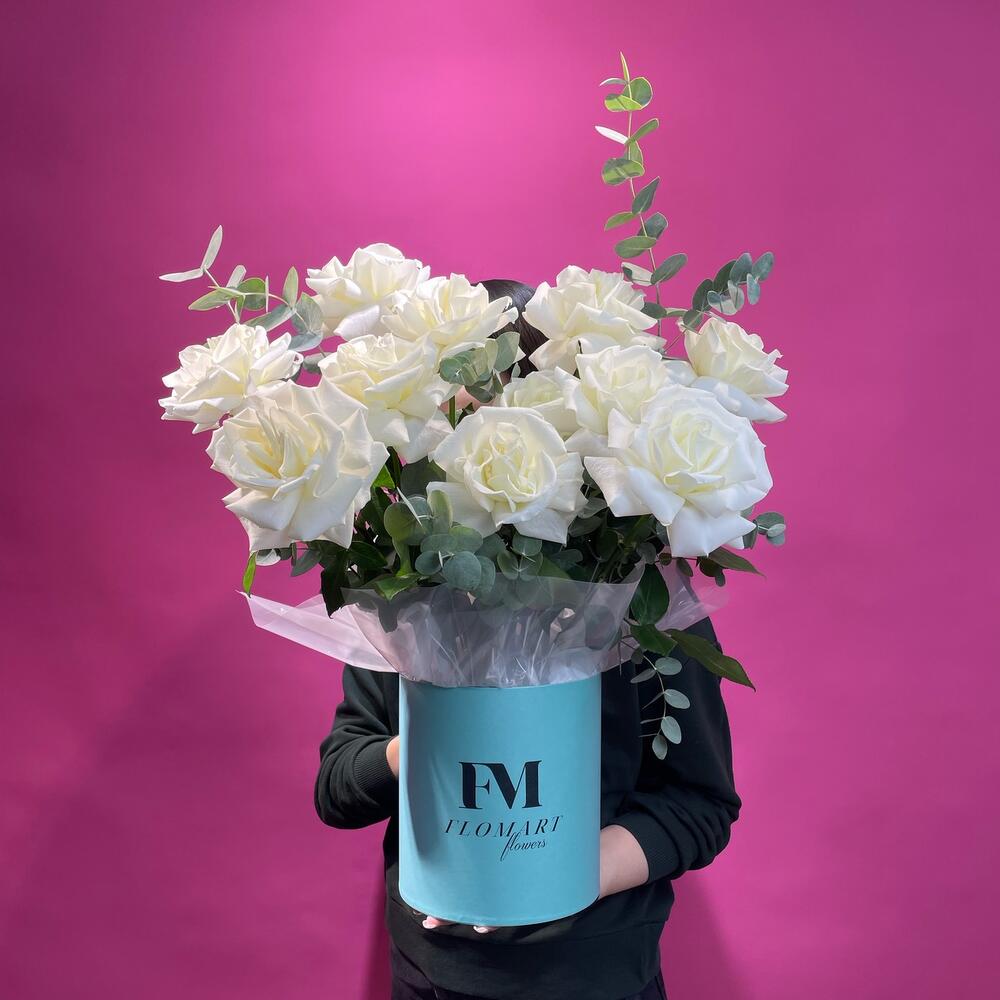 Нежный букет из роз в шляпной коробке для нежной и романтичной натуры