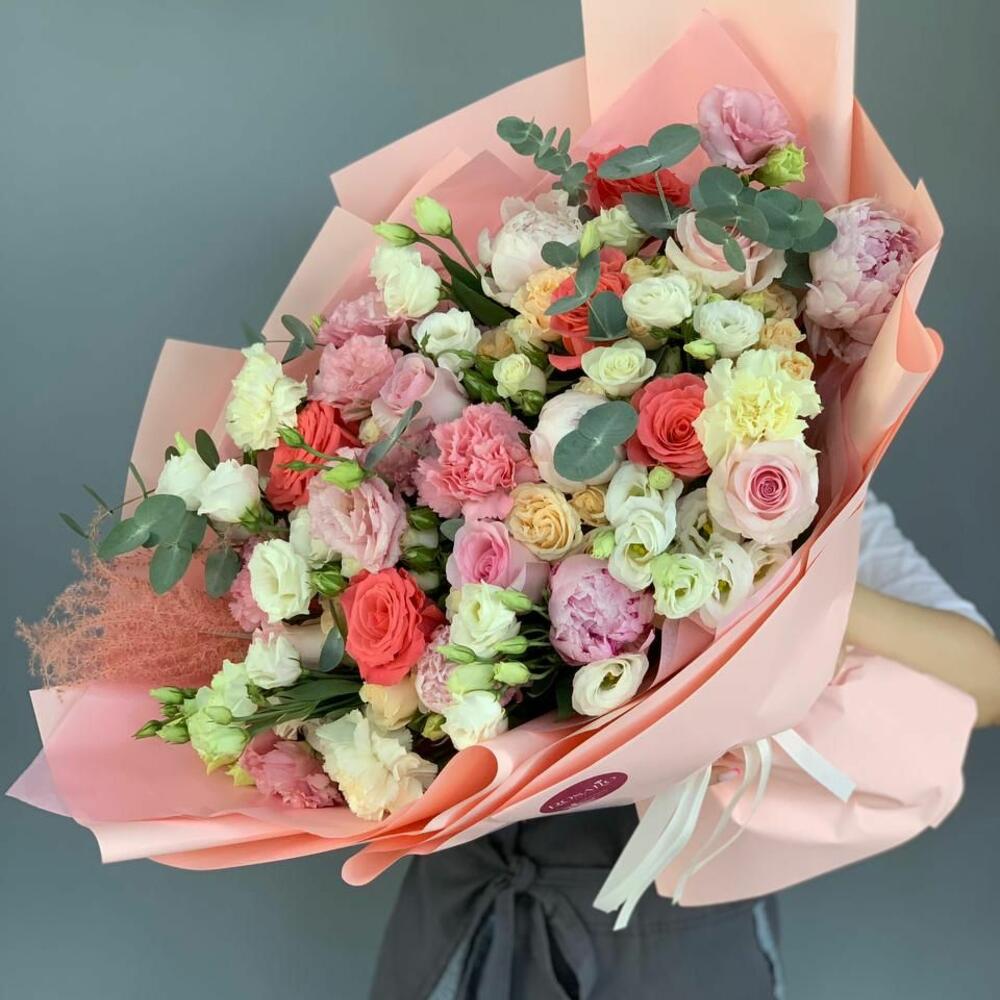 Гвоздики, Кустовые розы, Пионовидные розы, Розы