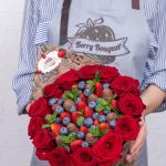“Сладкое сердце ” – цветочная композиция с сладостями в коробке “Сердце”