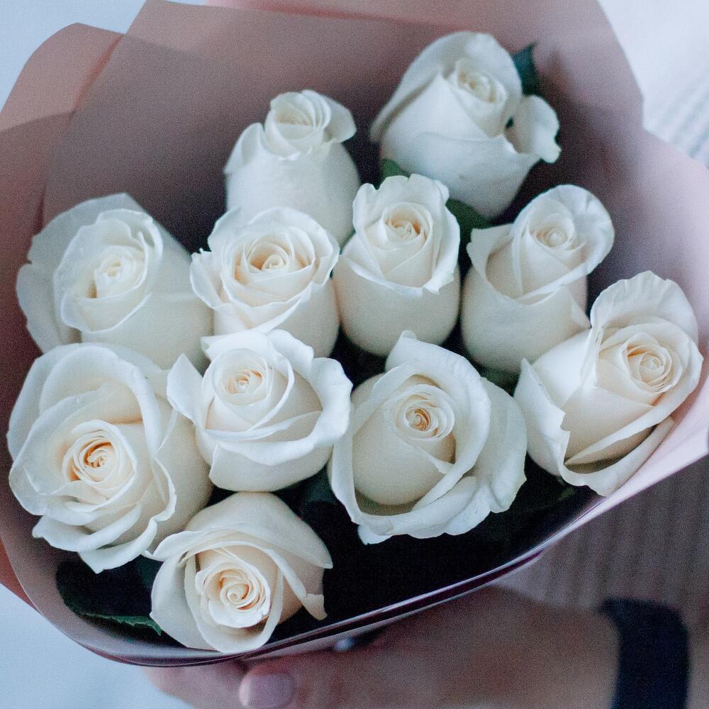 Букет из 11 белых роз (Эквадор) 50 см Vendela в кремовой пленке