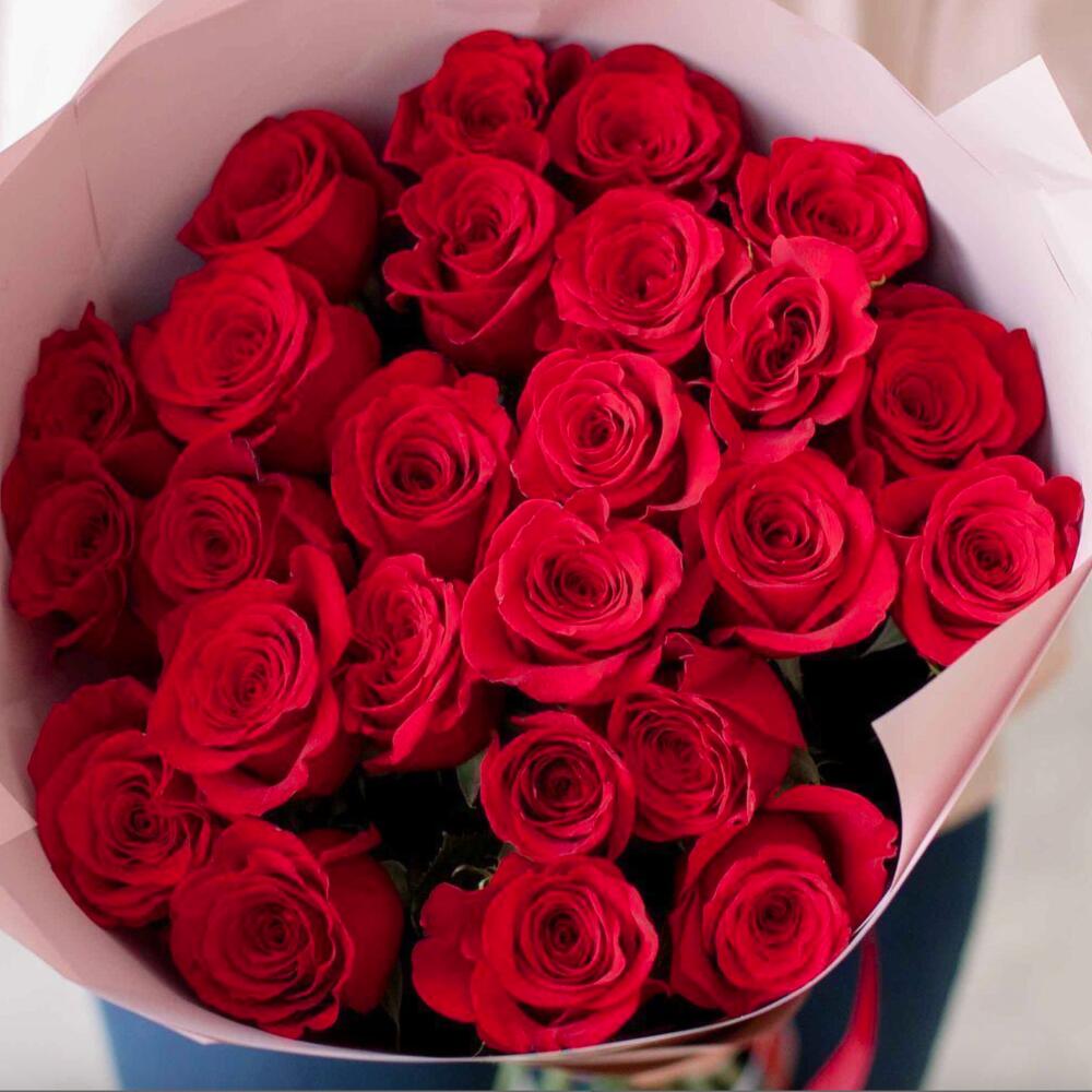 Букет из 25 красных роз (Эквадор) 70 см Freedom в розовой пленке