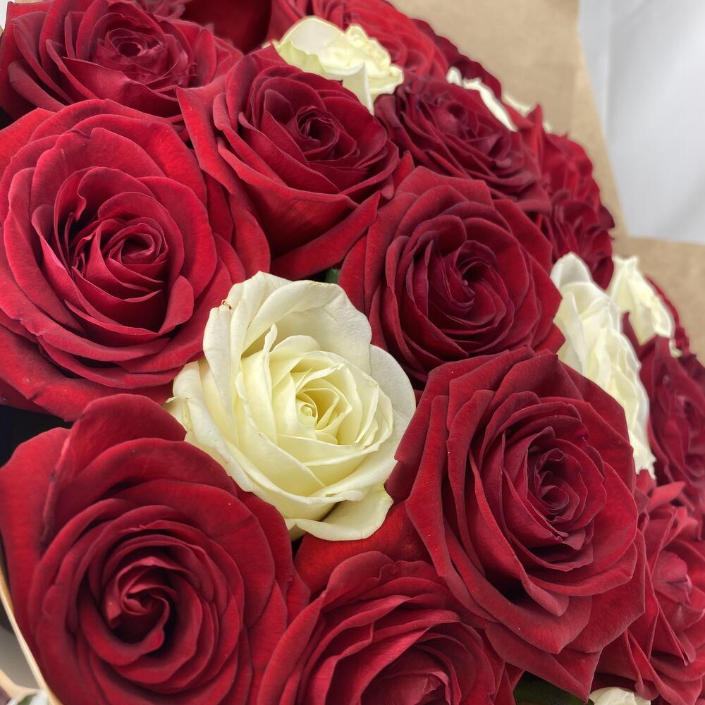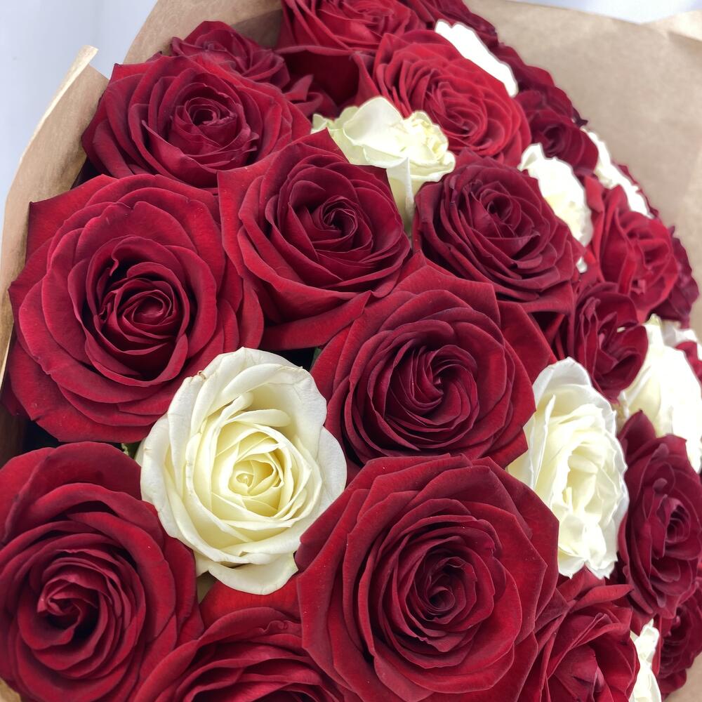 Букет из 35 красных и белых роз