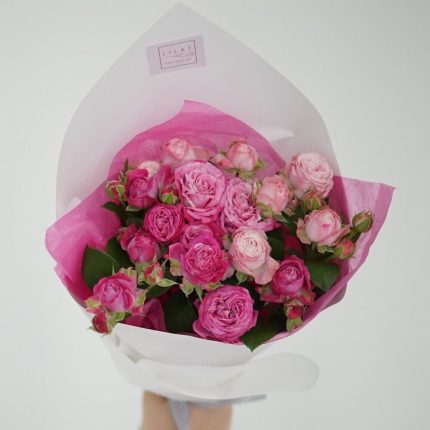 Кустовая пионовидная роза сорта Пиони Бабблс будет прекрасно смотреться в крепких объятиях Вашего близкого человека так же,как и Вы после вручения букета