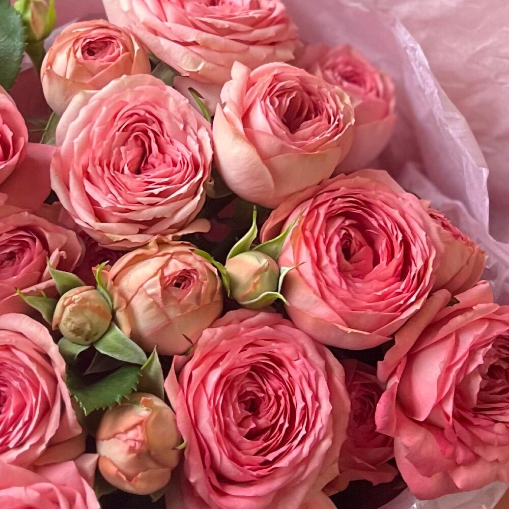 Букет из нежных пионовидных кустовых роз