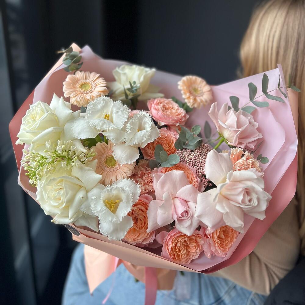 Карамельно-сливочный букет с ранункулюсами и пионовидными розами