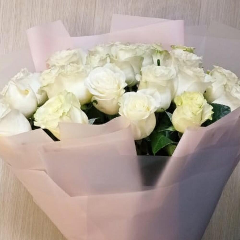 Метки: 25 роз, Белые розы, от 4000 до 5000 руб, Роза 70 см