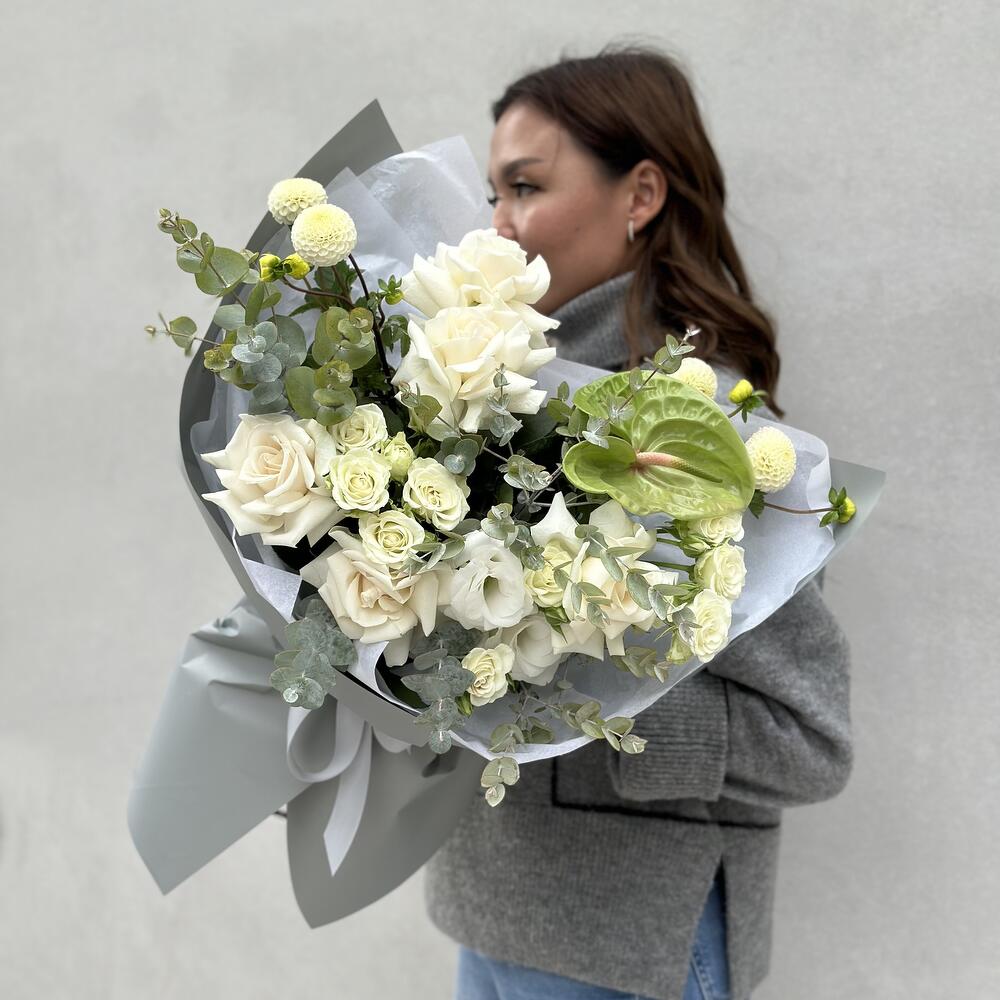 Элегантный букет в бело-зеленой цветовой гамме.