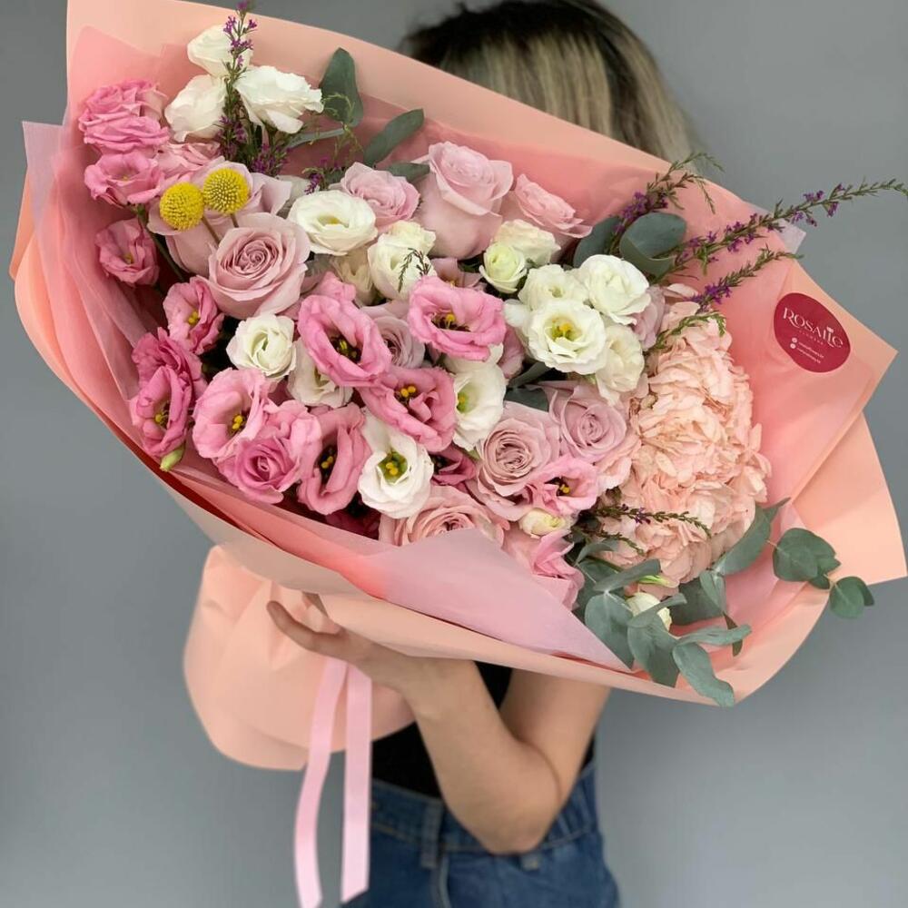 Альстромерии, Кустовые розы, Лизиантусы, Пионовидные розы, Розы, Ромашки