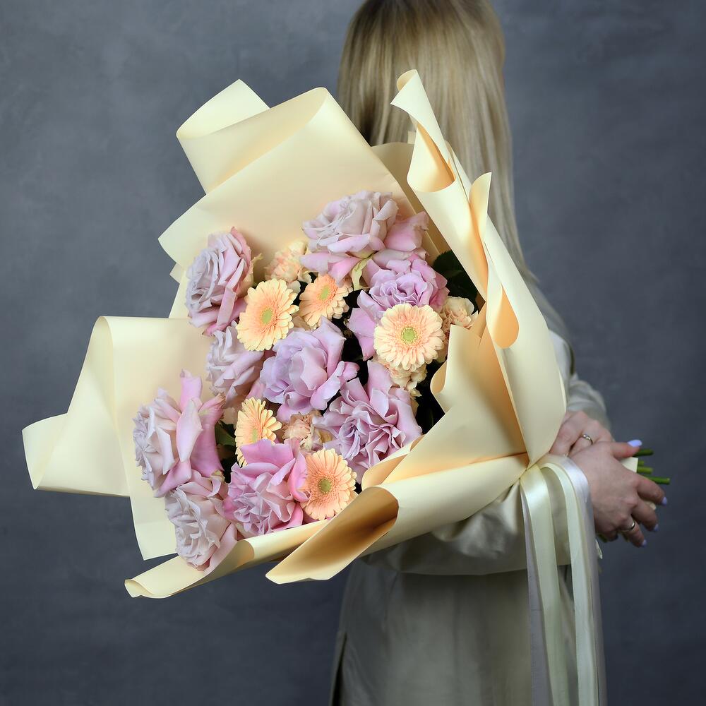 Диантус кремовый – 7 шт.гермини кремовая – 5 шт.роза французская фейт – 9 шт.