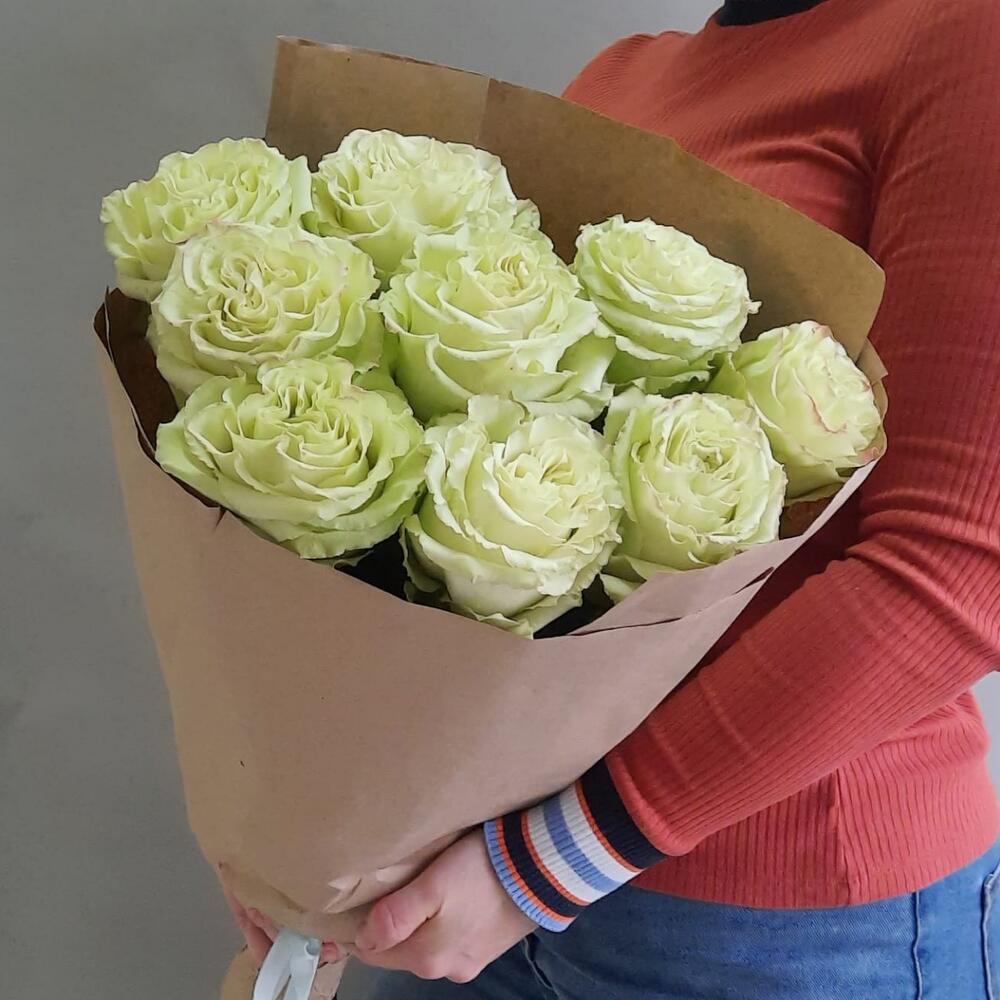 Роза лимонад – 9 шт.Упаковка крафт – 1 шт.Лента атласная – 1 шт.