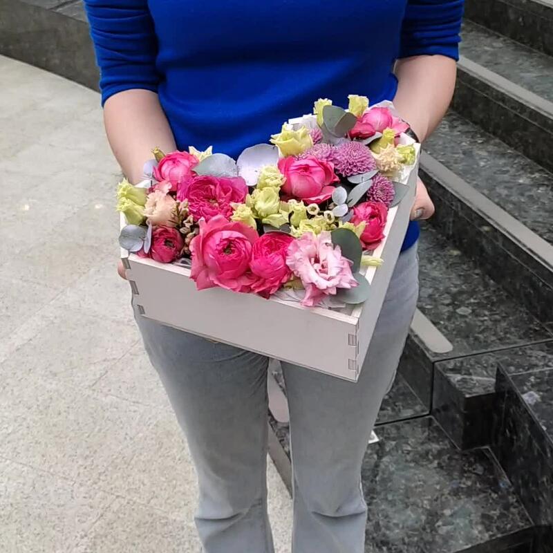 Цветочная композиция в деревянном ящике
