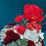 Гипсофила – 2 шт. Эвкалипт – 1 шт. Роза – 11 шт. Коробка шляпная – 1 шт. Медведь плюшевый – 1 шт. серца серца – 1 шт.