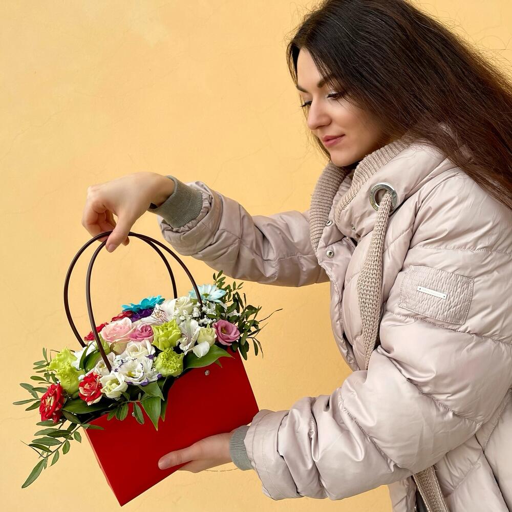 Цветы в сумочке Микс red