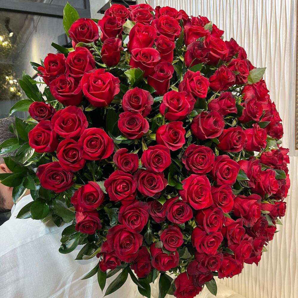 Метки: 101 роза, от 5000 руб, Роза 100 см
