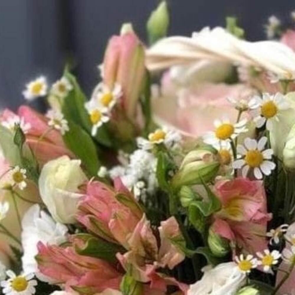 Категорий: Альстромерии, Гипсофила, Лизиантусы, Розы, Ромашки